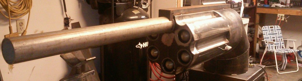 Revolver BBQ Pits 11 Monday May 2015 Posted by scoroncocolo in Uncategorized ≈ Leave a comment Revolver BBQ Pits Here in his wielding shop, deep in the heart of Texas, Scott makes some awesome Revolver Barbecue Pits. A BBQ Pit on Its Way to Awesomeness ¯_(ツ)_/¯ The trigger works as a damper to control the heat. Cool huh! Share this: Click to share on X (Opens in new window) X Click to share on Facebook (Opens in new window) Facebook Like Loading... Related