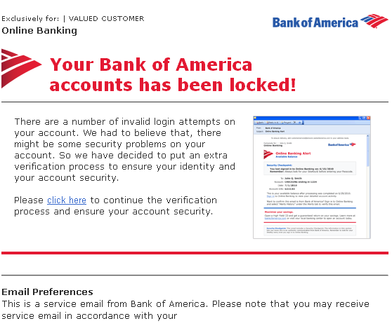 Google the phrase “Your Bank of America Accounts Has Been Locked” to investigate this phishing scam for yourself.